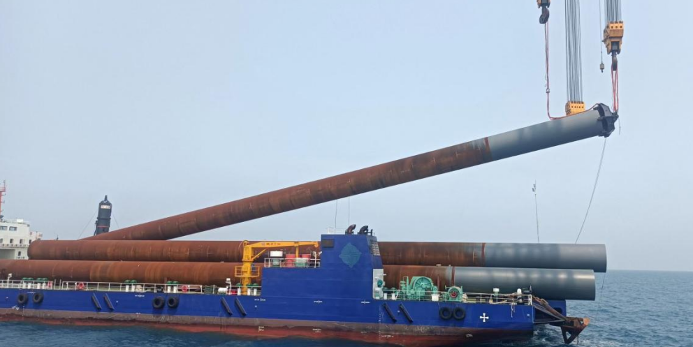 踏上運(yùn)輸船那一剎,楊澤心中既興奮又忐忑。興奮的是一切順利,晚上即可開始翻樁沉樁;忐忑的則是“一切”能否順利還未可知。然而“萬事開頭難”的定律似乎百試不爽,驗(yàn)收過程中,四根鋼管樁橢圓度超標(biāo),最大直徑超過設(shè)計要求30mm。